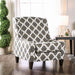 This accent chair features a beautiful diamond floral pattern against an ivory fabric. This is a pleasing addition of color and pattern to a room, ...