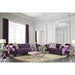 Leave a lasting impression with this timeless reimagining of the chesterfield sofa. Cues from the classic design are kept with essential changes to bring it to the modern day. The reverse camelback seat and arms are deeply tufted with acrylic buttons, and the premium fabric used is in a regal shade of purple. Matching pillows with intricate pattern are included.