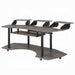 With no detail left unnoticed, this Eleazar Music Recording Studio Desk provides excellent functionality and versatile organizing options. With an extensive desk top design, plenty of workable surface area is left. The multi-function hutch is perfect for displaying monitors, speakers, documents, and books. While the lower shelf can be used to place larger items. Available in two sizes and two different finishes, this contemporary piece will sure to be the perfect addition to your home office.