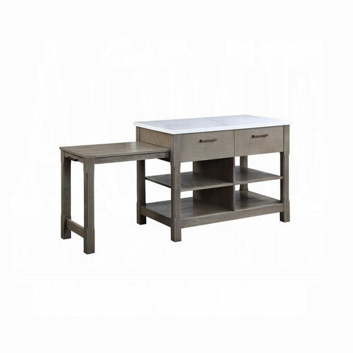 ACME Lanzo Kitchen Island (Counter), Marble & Antique Pewter, 50" x 28" x 36"H, 119Lbs. The Lanzo kitchen cart is a harmonious blend of form an...