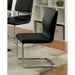 LODIA I Black/Silver Side Chair, 17"W X 21"D X 36"H, 41.4lbs. Pair your dining room with this simple yet eye-catching dining chair design. These padded leatherette chairs create an air of modern elegance with the help of sleek chrome legs. Available in black or white. Features: Contemporary Style Padded Leatherette Chair w/ Chrome Legs