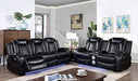 Take your living space to another level with this cozy and futuristic ensemble. Plush backs and arms are adorned with diamond stitching on smooth leatherette. Underneath each arm is extra storage. The main draw here is the LED lights on the bottom of the sofa--lighting that lifts the mood from unexpected to exotic. And underneath the headrest comes a pair of reading lights controlled by a touch of a finger.