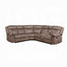 • The Dollum collection is ideal for those who seek casual comfort in their home. At a glance, the collection shows off its comfortable design with its plush pillow arms, plush backrests and headrests, and reclining seating. Contrast stitching provides a touch of detailed texture to create visual depth against the two-tone chocolate velvet. The sectional sofa features a console with two cupholders and storage with USB and AC power ports, perfect for your casual home.