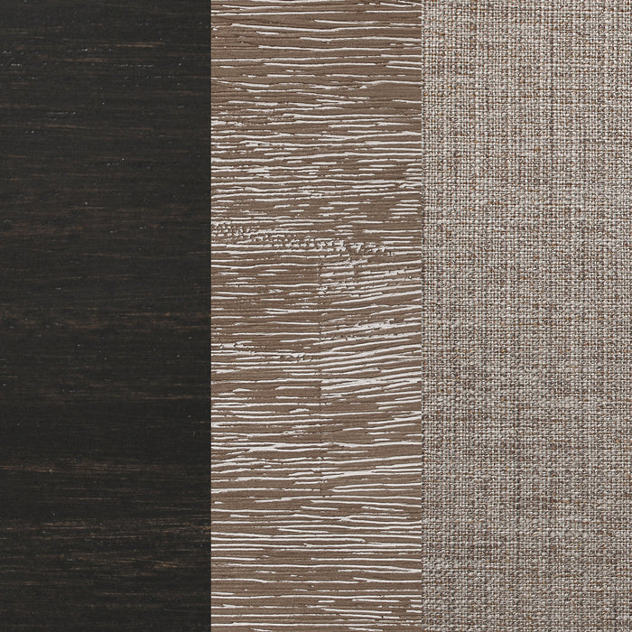 Traditional attitude is bold and rustic with modern updates adding style to your dining area. This five-piece dining set brings out the best in a hybrid aesthetic of farmhouse and mid-century looks with a soft, versatile color and finish palette and construction of Asian hardwoods and wood products. A rectangular table mixes finishes between its brown brushed finish top and a glam charcoal sand through finish base and legs. Curvy lines and turned legs add an alluring feel to a table playing host to brown finish ladderback chairs. A smoothly arched side silhouette with turned front legs creates a glam look, embellished with neutral and soft stone brown fabric seat upholstery.